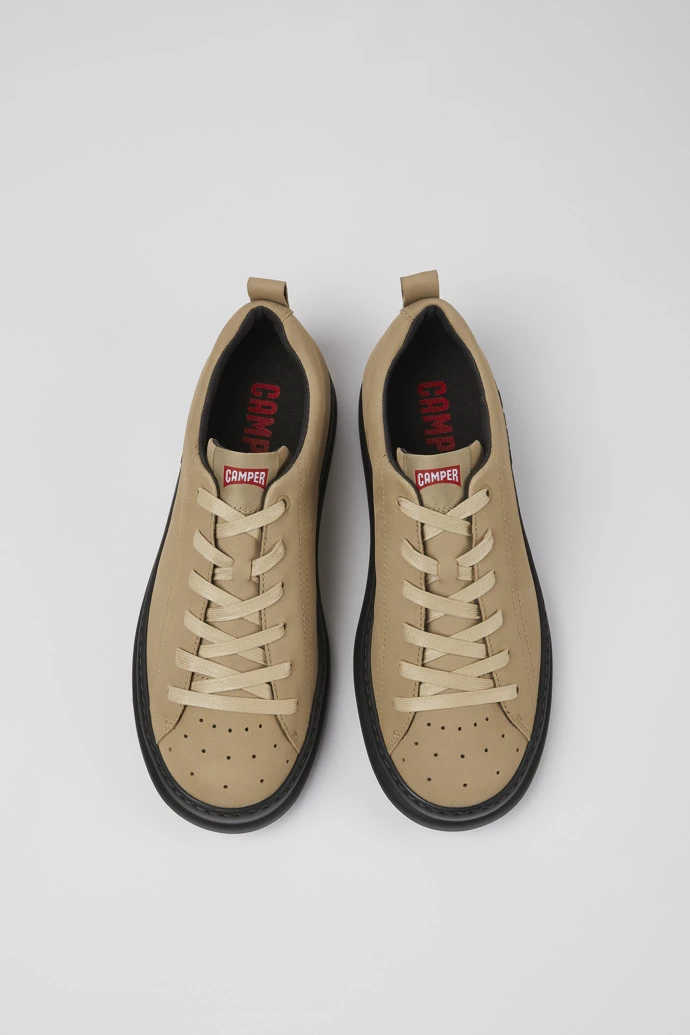 Beige nubuck men’s sneakers with OrthoLite® Recycled™ removable footbeds and EVA outsoles.