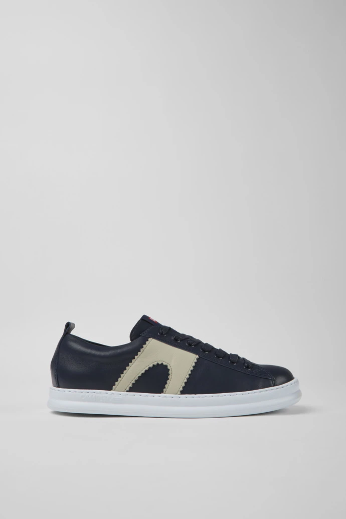 Blue leather men’s sneakers with OrthoLite® Recycled™ removable footbeds and EVA outsoles.
