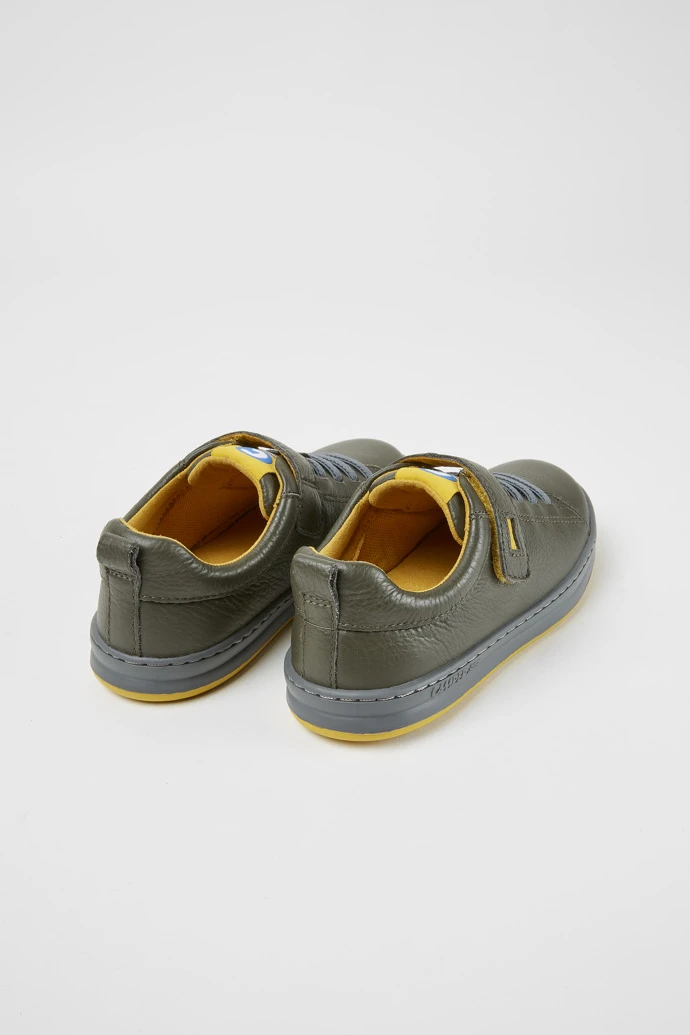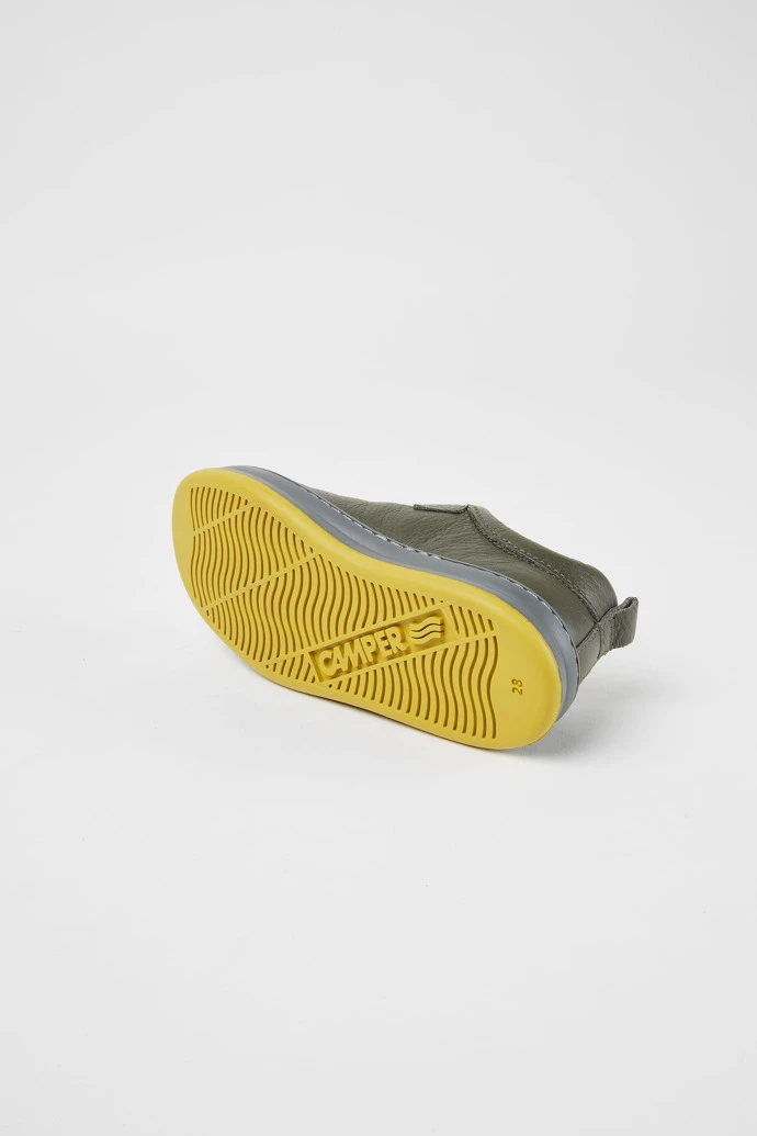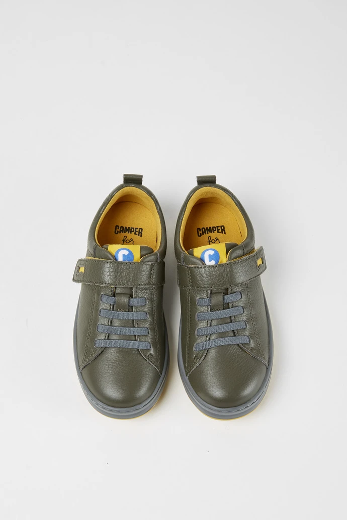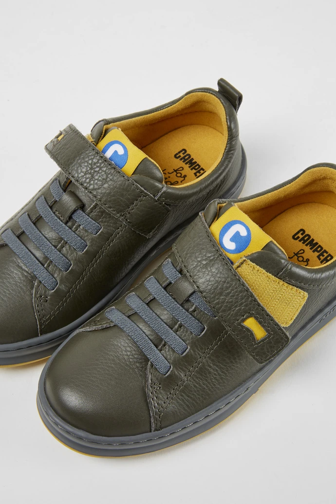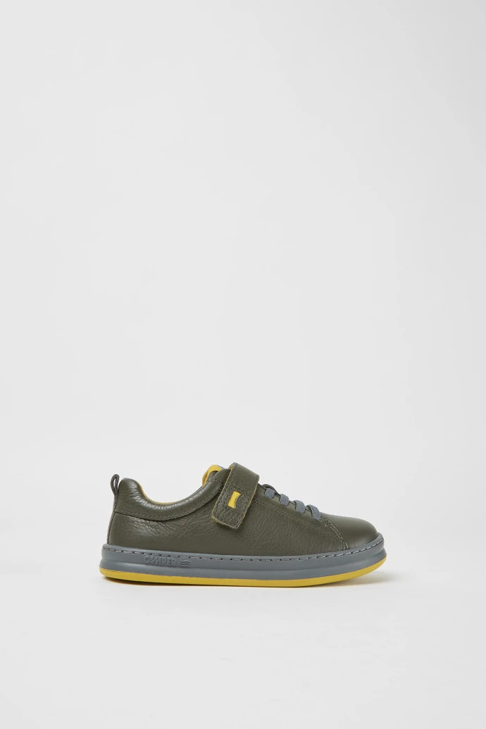 Green leather sneakers for kids with contrast stitched rubber outsole.