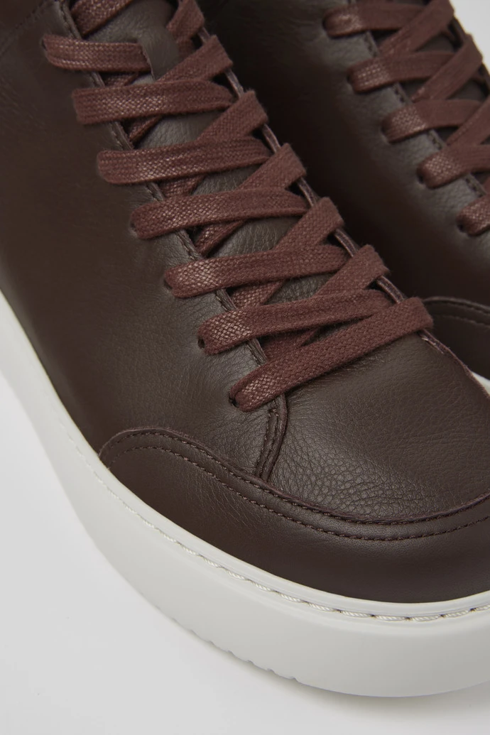 Burgundy leather men’s sneakers, OrthoLite® Recycled™ removable footbeds, and XL EXTRALIGHT® Organix™ 3.0 outsoles (30% bio-circular compounds).