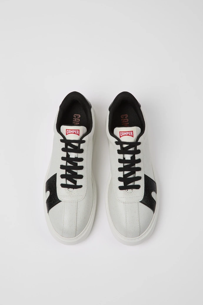 White and black women’s sneakers with natural plant-based MIRUM®️ uppers and XL EXTRALIGHT® Organix™ outsoles (30% bio-based sugarcane).