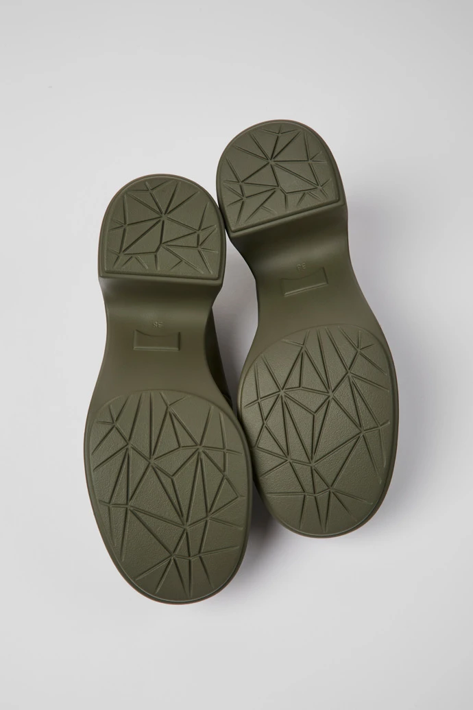 Green leather women’s shoes with removable EVA footbeds and PU outsoles.