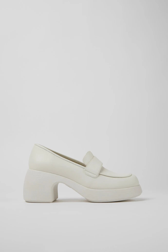 White leather women’s shoes with removable EVA footbeds and PU outsoles.