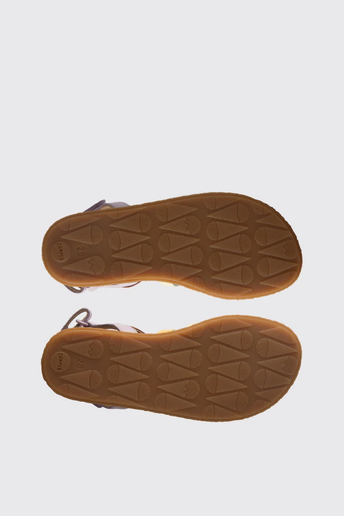 Multicoloured TWINS sandal for girls. Beige, yellow and purple crossed leather ribbons on the upper. 100% rubber outsole.