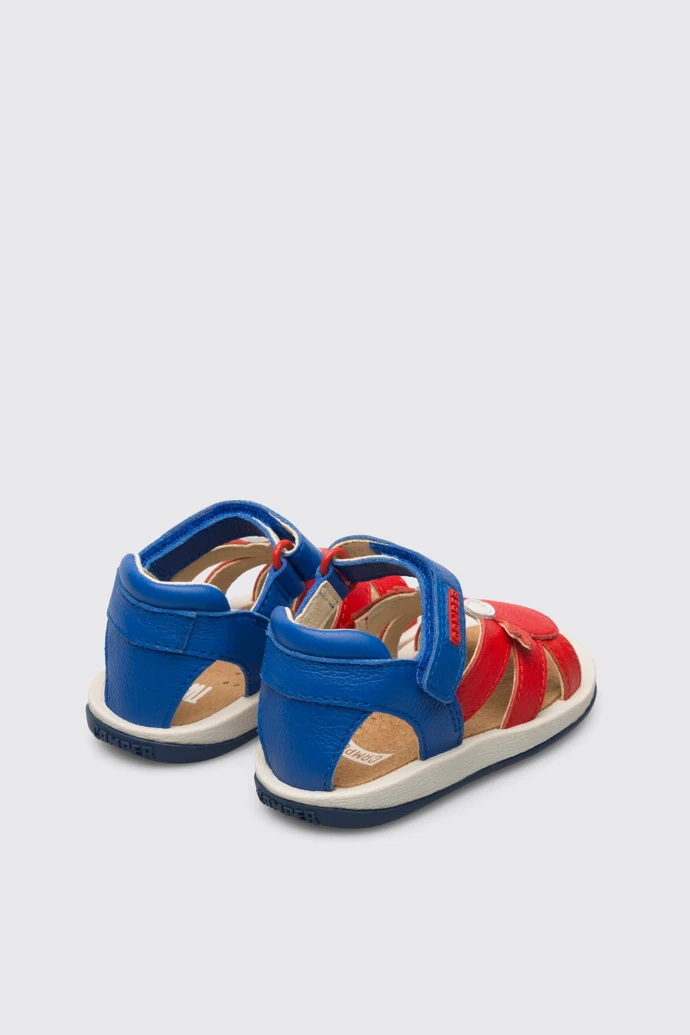 Red TWINS sandal with velcro for kids. Crab-shaped leather upper. 100% brown and blue rubber outsole.